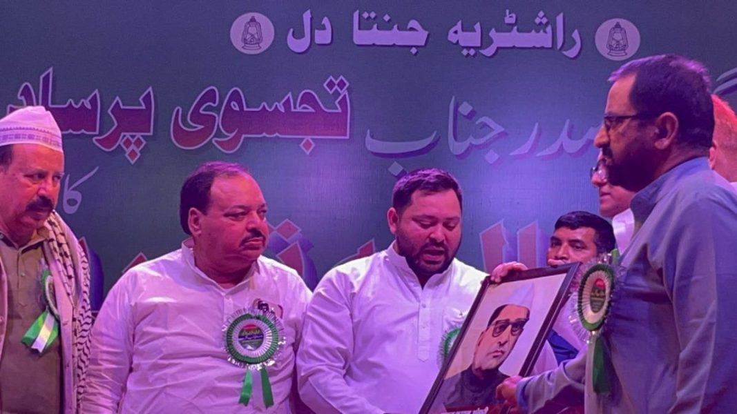 समारोह में तेजस्वी यादव को पारंपरिक तरीके से सम्मानित किया गया। कार्यक्रम की अध्यक्षता डॉ. अनवर आलम और संचालन मोहिबुल हसन हीरा ने किया। बड़ी संख्या में पार्टी कार्यकर्ता और गणमान्य लोग उपस्थित रहे।